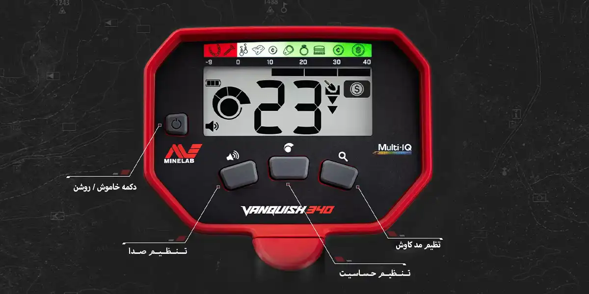 با فناوری Multi-IQ،VANQUISH 340 فلزیاب میتواند همزمان در چندین فرکانس کار کند و به این ترتیب، تمام فلزات را به طور دقیق و سریع شناسایی کند. این فناوری به شما کمک میکند تا بدون نگرانی از نوع خاک یا شرایط دشوار محیطی، به کاوش بپردازید.